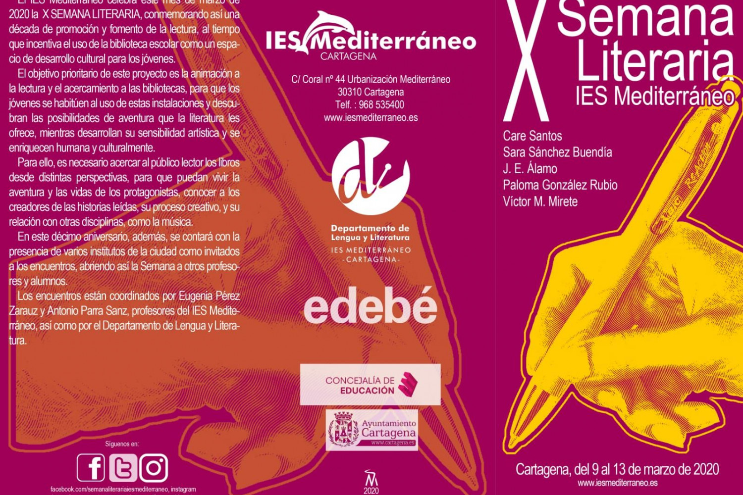 La X semana literaria IES Mediterráneo ya tiene cerrada su programación